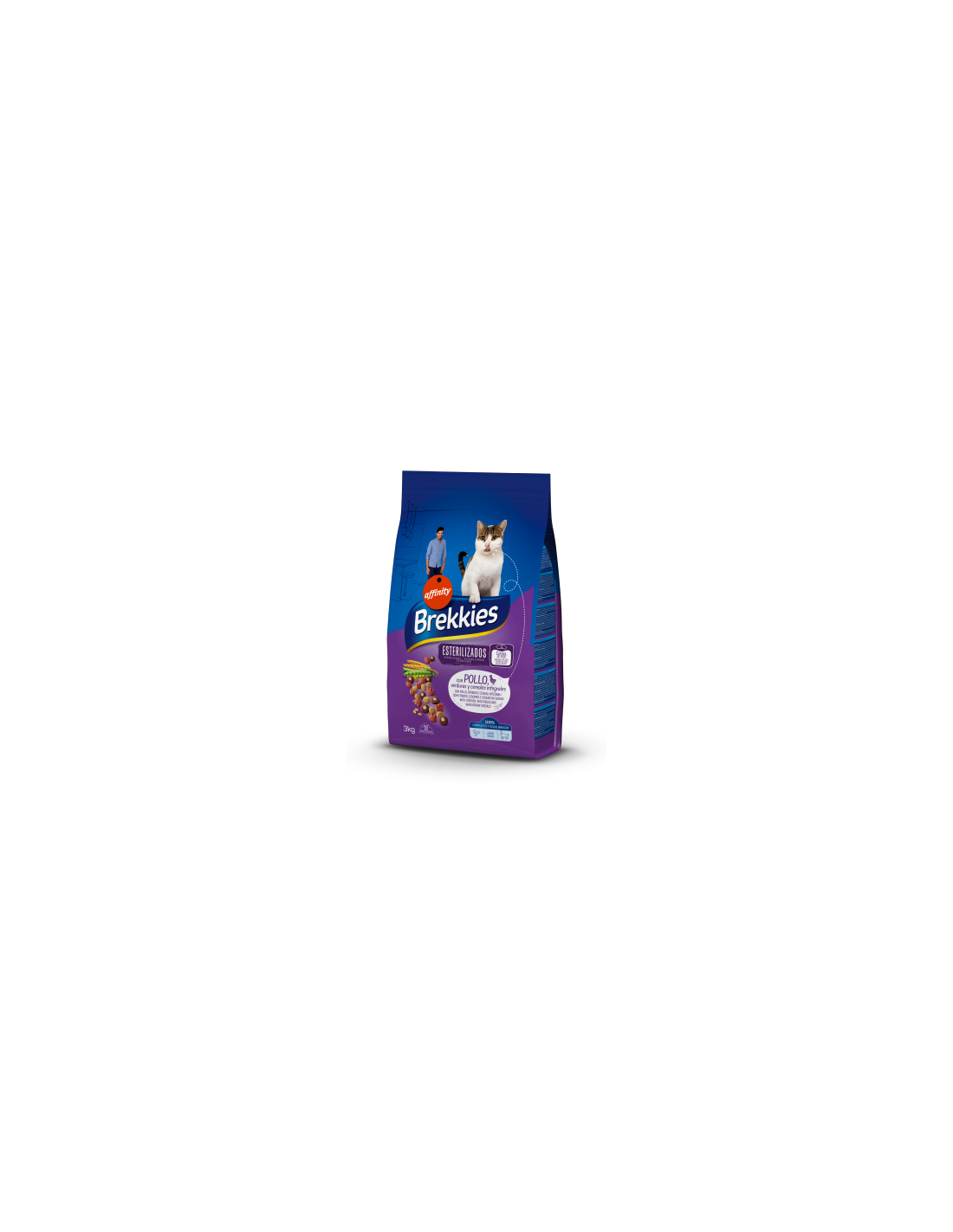 Este pienso de Brekkies Excel para gatos adultos esterilizados es completo y equilibrado como alimento habitual. Su receta con pollo y cereales integrales resulta sana y deliciosa. Los gatos esterilizados tienen tendencia al sobrepeso y a tener problemas urinarios y, por eso, esta variedad de Brekkies Excel contiene un 25% menos de materia grasa y un 50% más de fibra que Brekkies Excel Complet, lo que ayuda a mantener el peso óptimo de tu mascota.