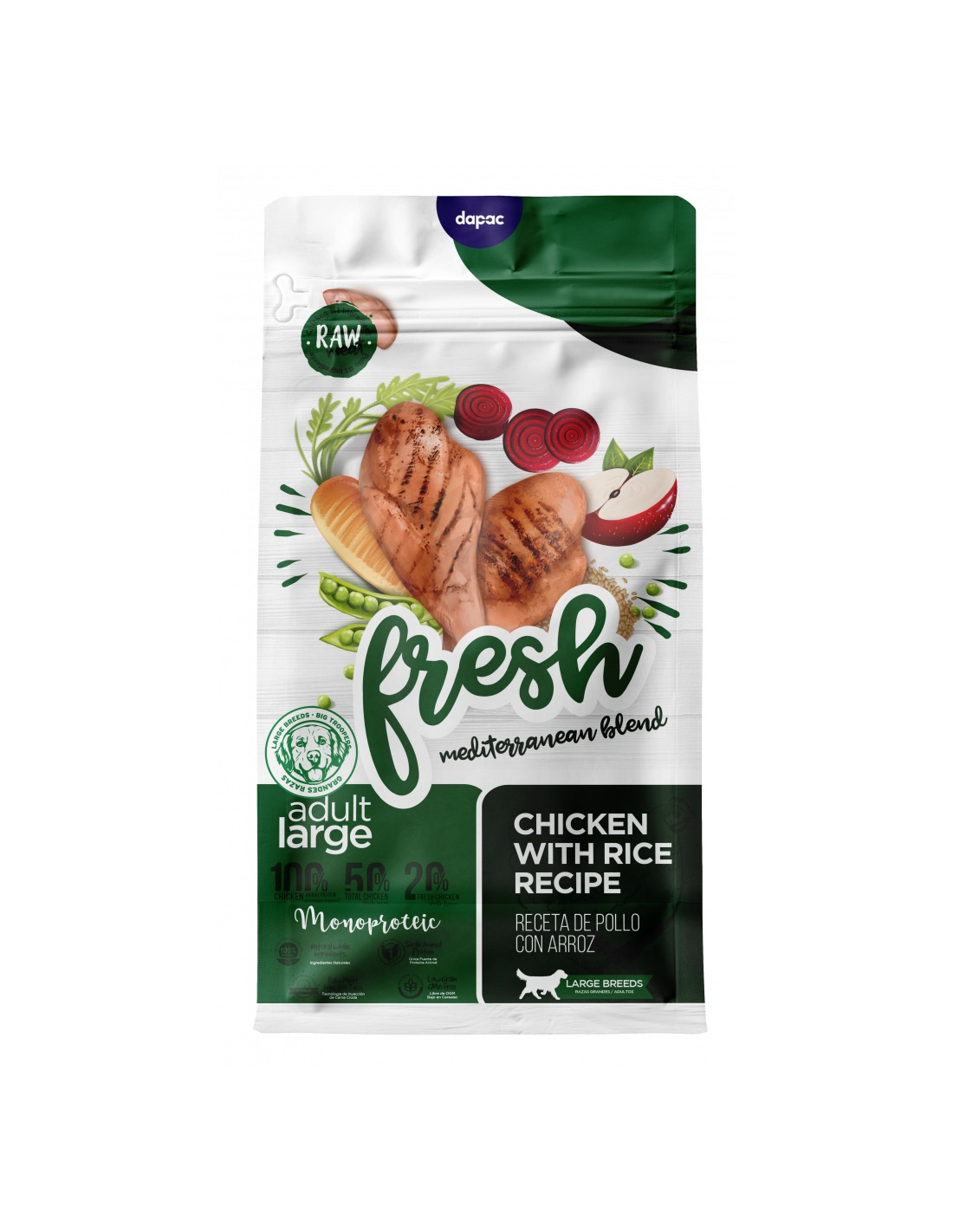 Adult Complete Fresh Mediterranean Blend es una receta pensada indicada para perros de todas las razas en edad adulta.