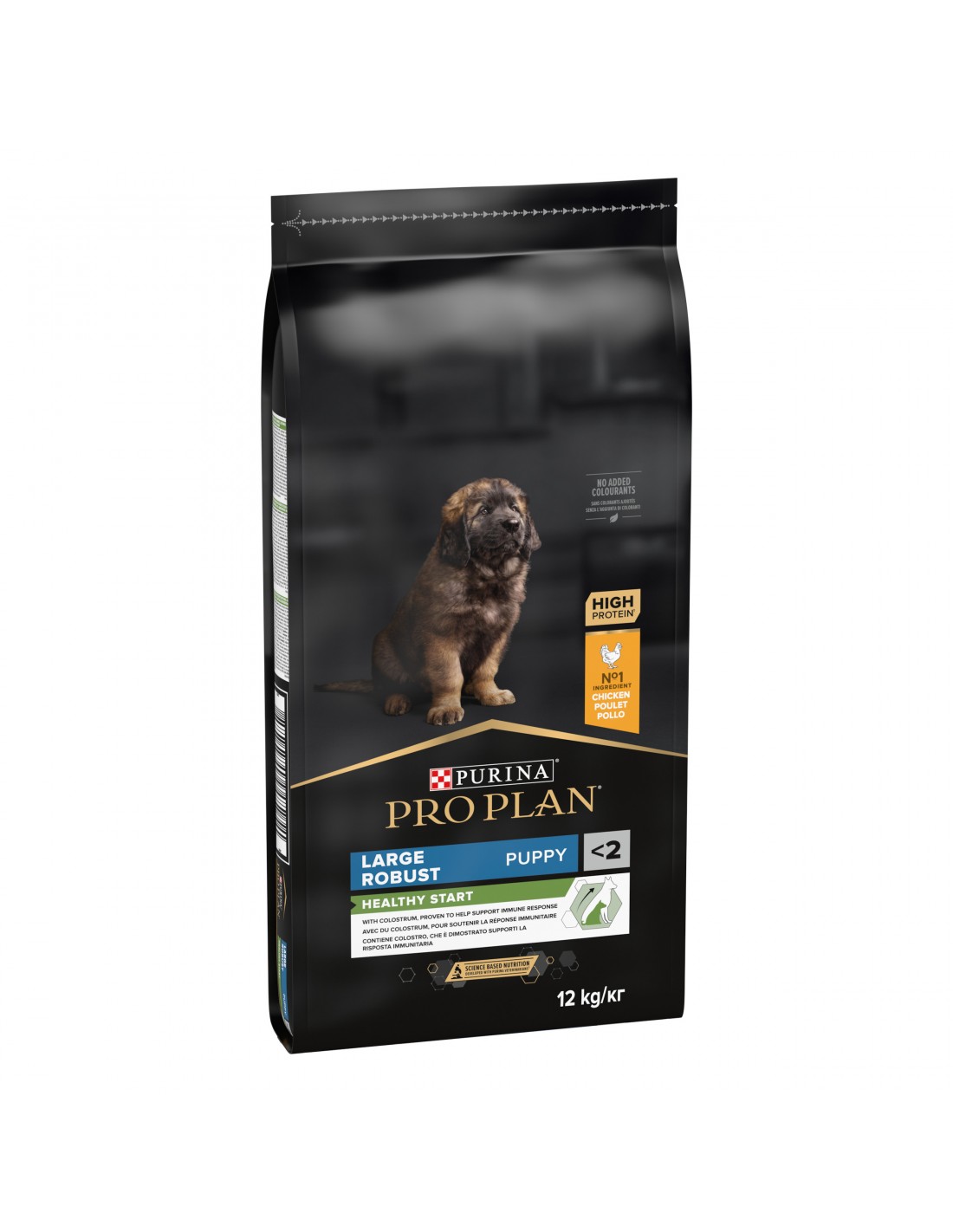 Pro Plan Puppy Large Robust Healthy Start rico en Pollo es un alimento completo para cachorros de razas grandes de constitución física robusta, rico en pollo. También es adecuado para perras gestantes / lactantes. Contiene calostro, que se ha demostrado que apoya a la respuesta inmunitaria.