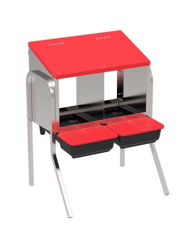 El modulo de ponederos para gallinas esta elaborado con chapa lacada para una máxima durabilidad en exteriores y sus bandejas en plástico de alta resistencia garantizan la protección y limpieza de los huevos que pueden ser recolectados fácilmente levantando la tapa protectora.