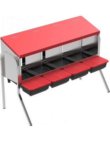 El modulo de ponederos para gallinas esta elaborado con chapa lacada para una máxima durabilidad en exteriores y sus bandejas en plástico de alta resistencia garantizan la protección y limpieza de los huevos que pueden ser recolectados fácilmente levantando la tapa protectora.