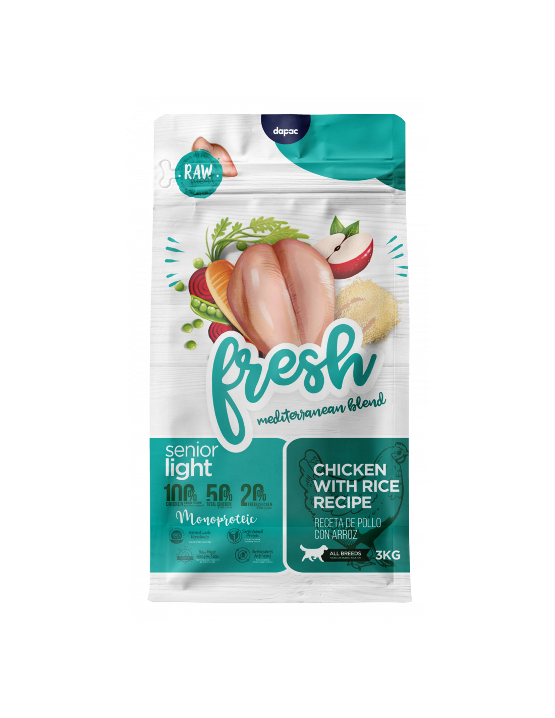 Ingredientes: carne fresca de pollo 20%, carne de pollo deshidratada, arroz 10%, guisantes, trigo, maíz, grasa de ave, cebada, hidrolizado de hígado de pollo, , pulpa de remolacha 3%, levaduras 1% (fuente de MOS), zanahoria deshidratada 0,5%,
